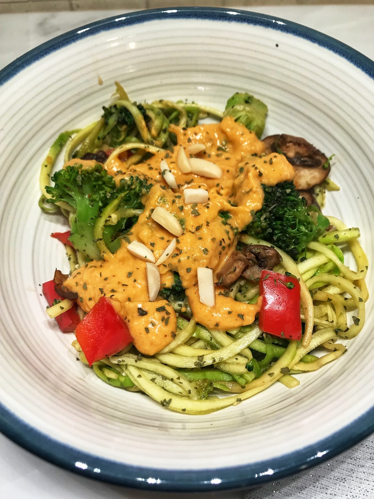 - 2 zucchinis spiralized, pressed with a paper towel to remove excess water